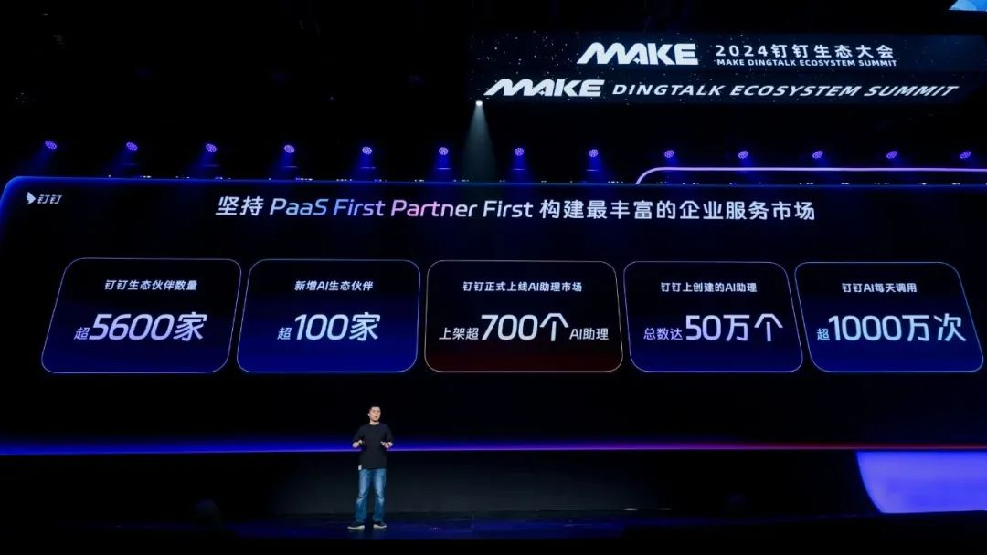 钉钉自 2022 年宣布全面开放生态以来,始终秉持“PaaS First,Partner First”的理念,逐步构建丰富的生态体系。2023 年 4 月,钉钉接入通义千问大模型。同年 8 月,钉钉进一步将智能化底座(AI PaaS)开放给生态伙伴。